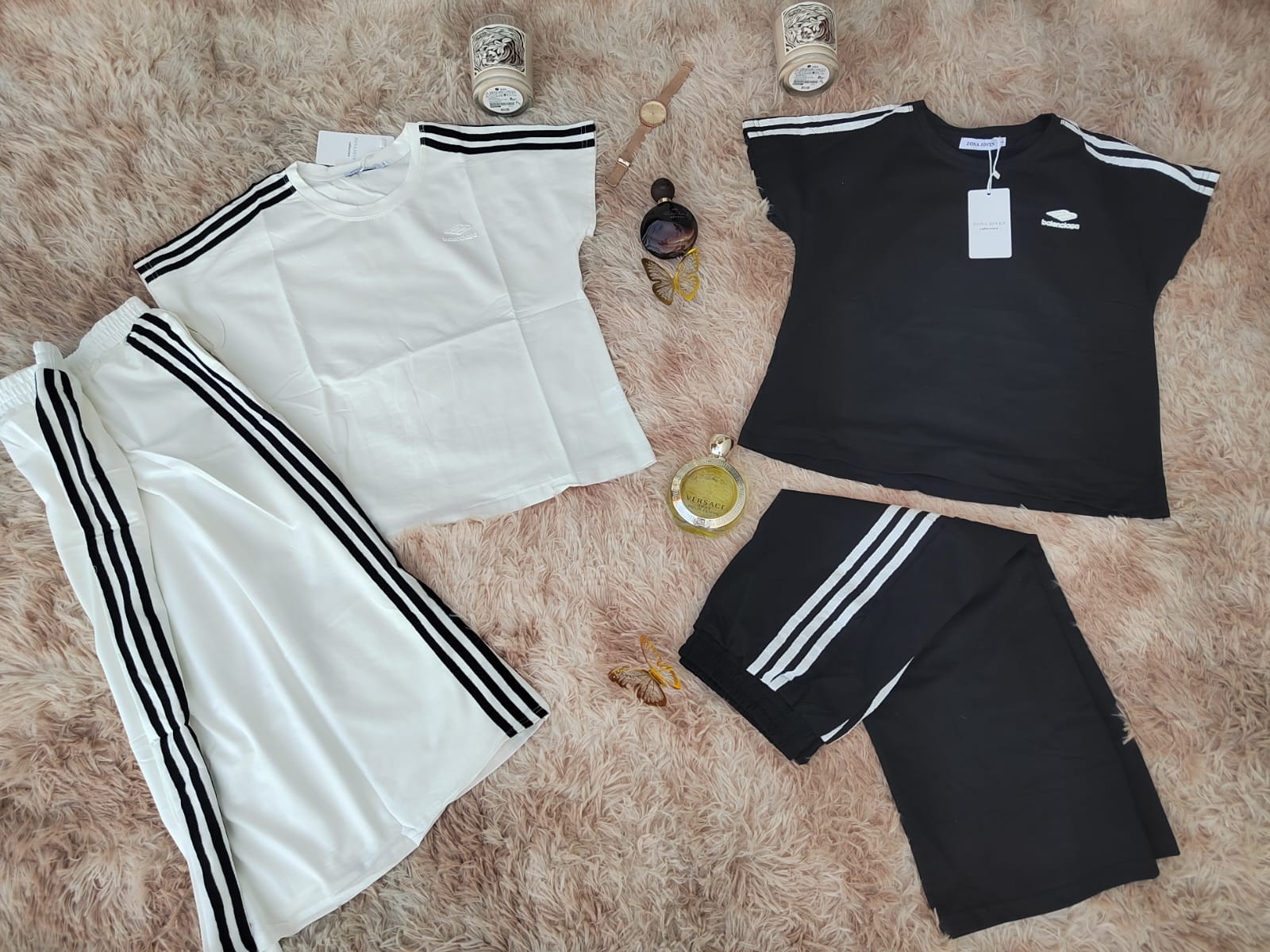 Falda midi y camisa a juego con franjas laterales que suman estilo a un conjunto cómodo, fresco y lleno de personalidad.